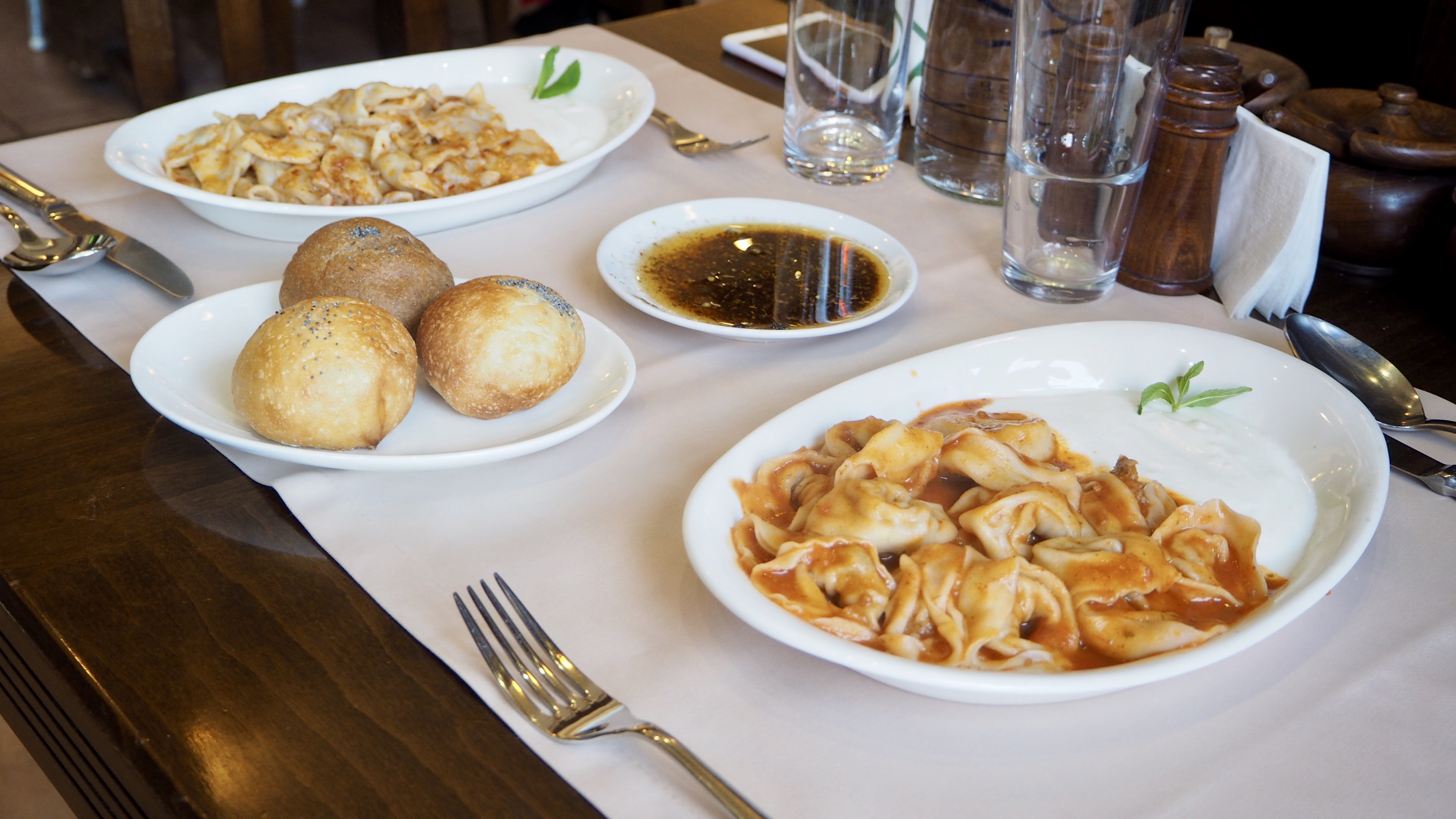Porsiyonlar resimde gördüğünüz gibi. Ön taraftaki Özbek Mantısı, arkadaki ise Sinop Mantısı. Tatları gayet güzel. Bir de menüde aklıma takılan el açması börekler var, özellikle çiğ börek ki anneannem efsane yapar. Demem o ki arada kaçamak yapmak için Emek Mantı Evi’ne gelebilirsiniz. Merak etmeyin, keyifle ve arada yenen yemekler kilo yapmaz 🙂